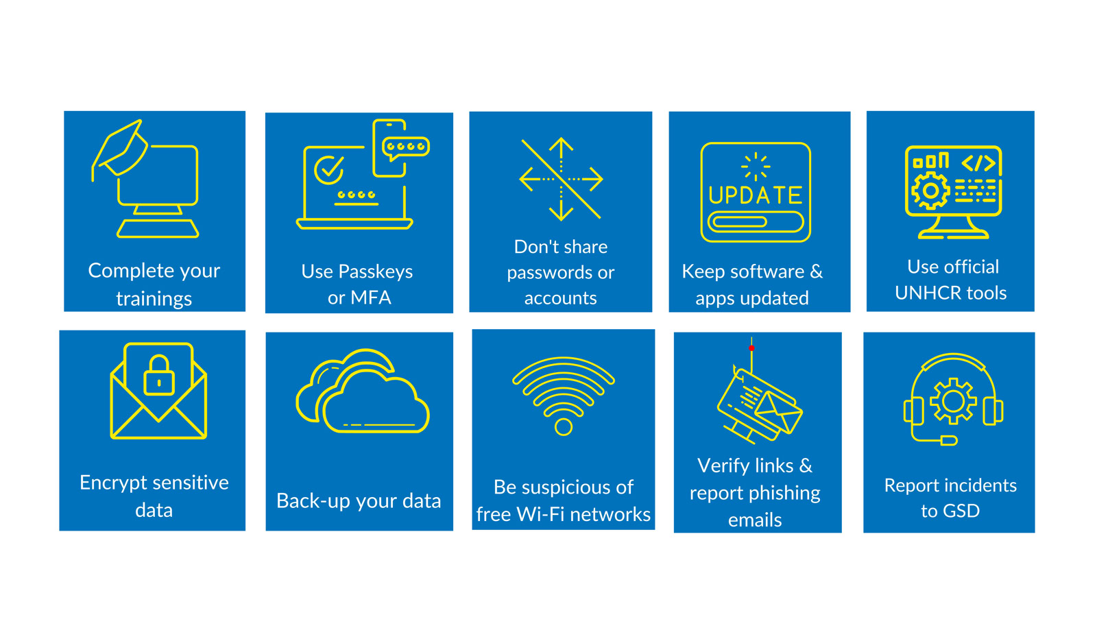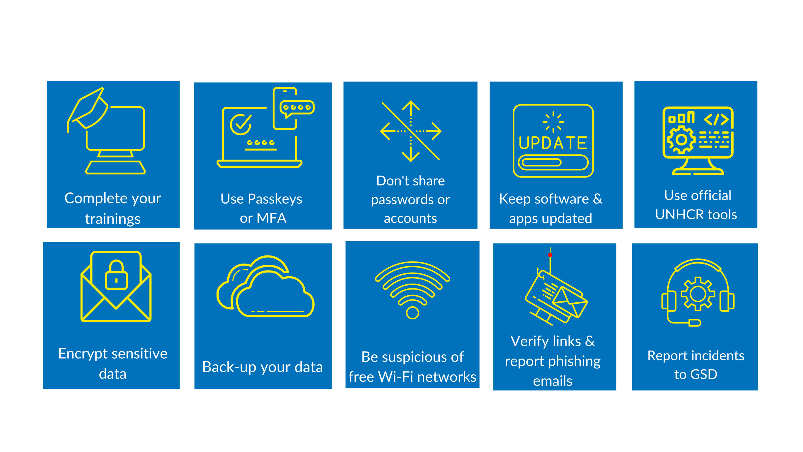 Report any suspicious messages to the Global Service Desk by clicking the "Report Phishing" button in your Outlook, or by sending the email as attachment to the email to GSD@unhcr.org.